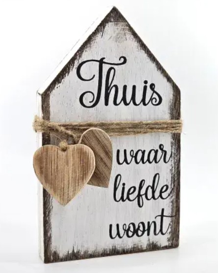 Houten huisje | Thuis waar liefde woont (20x12,5cm)