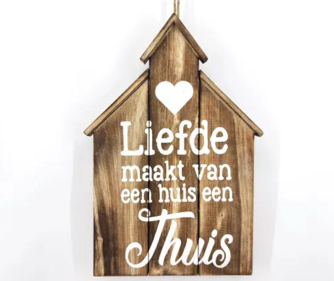Teksthuis hangend | Liefde maakt van een huis een thuis (42x30cm)